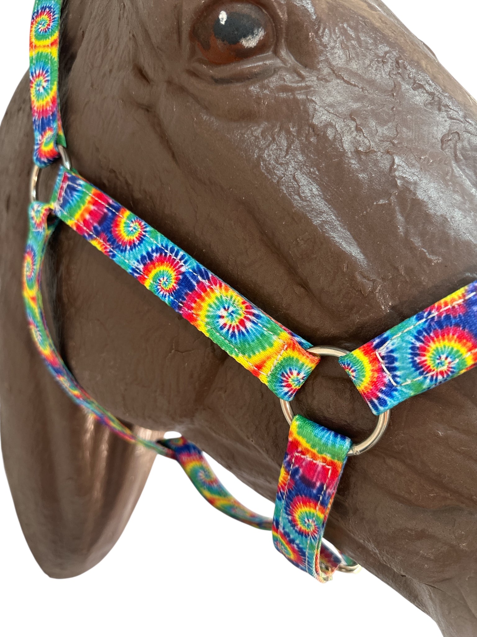 This is a nylon horse size halter made out of a tie dye print!