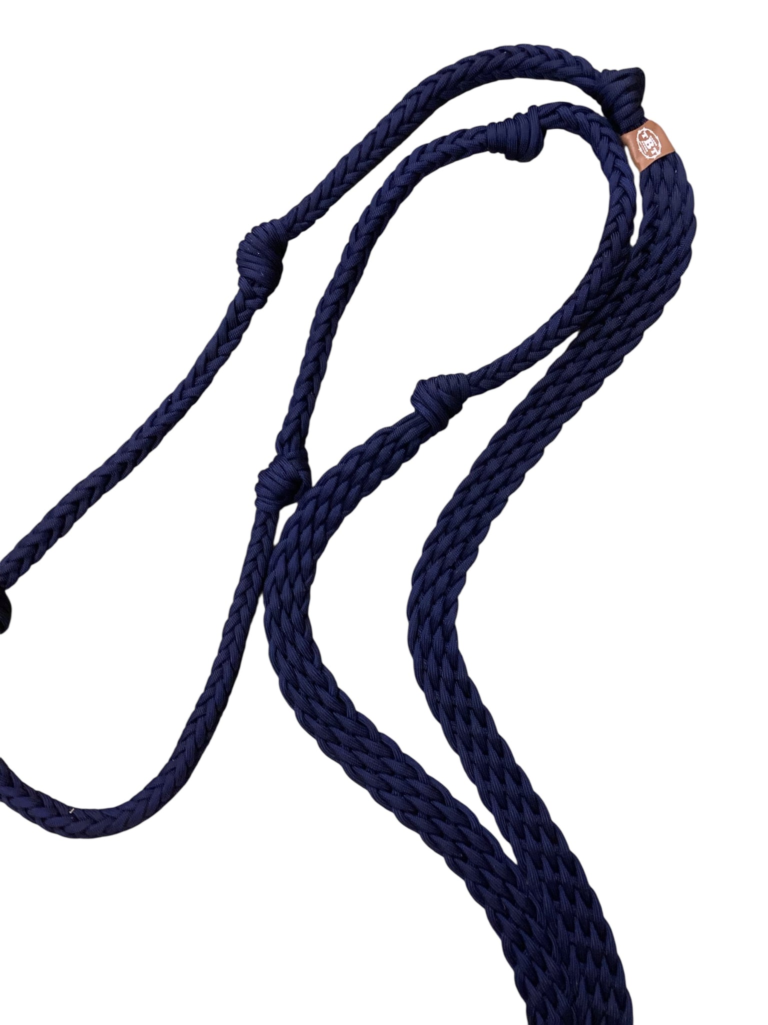 8 strands. .. Nice width and weight.  These are not too wide but they are wide enough and have a good weight.  You can choose the length and color of these  barrel reins.  You can adjust them shorter and they have grip knots to help with your turn.