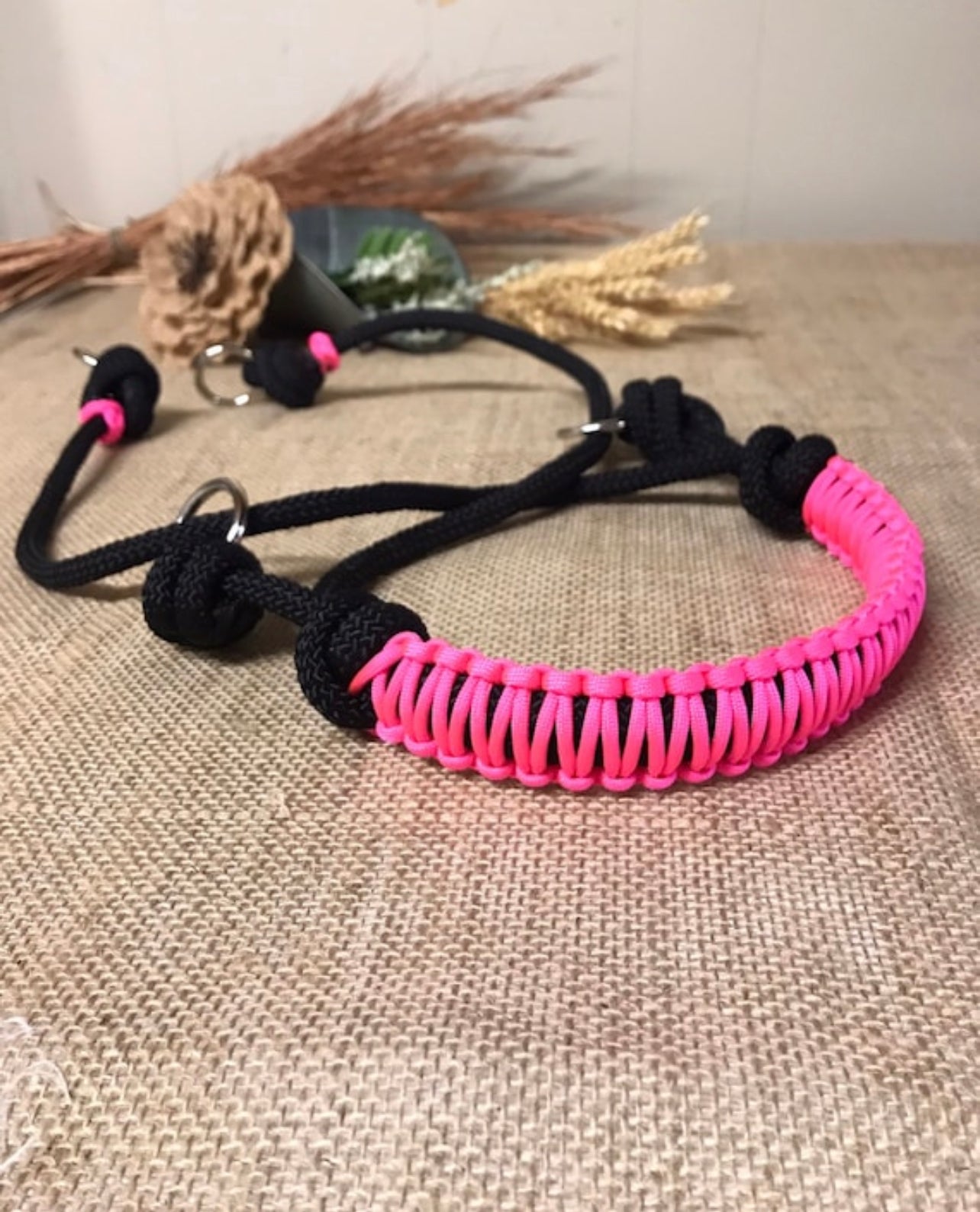 This Indian Bosal is made from 3/8" black rope that provides a nice release.  The noseband is braided from a high quality 550 paracord.  You can choose the color of the noseband from the color chart and leave a note on the checkout page for the color.  It will be made on black rope.
