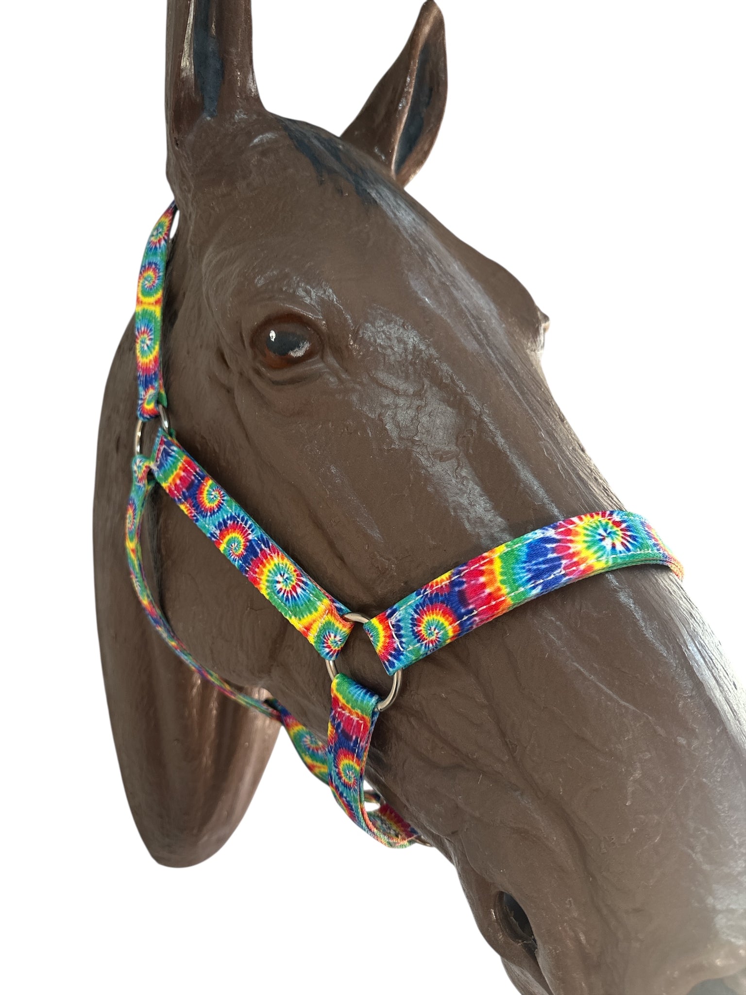 This is a nylon horse size halter made out of a tie dye print!