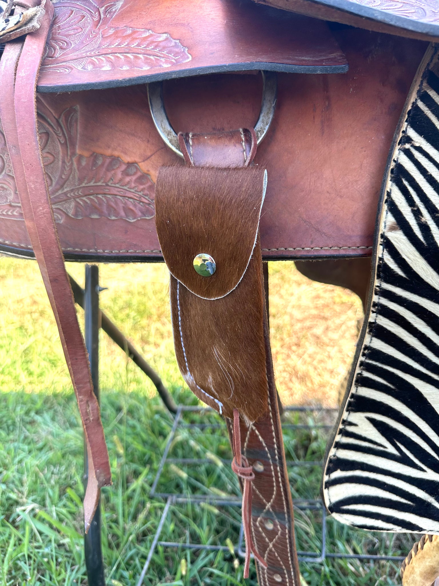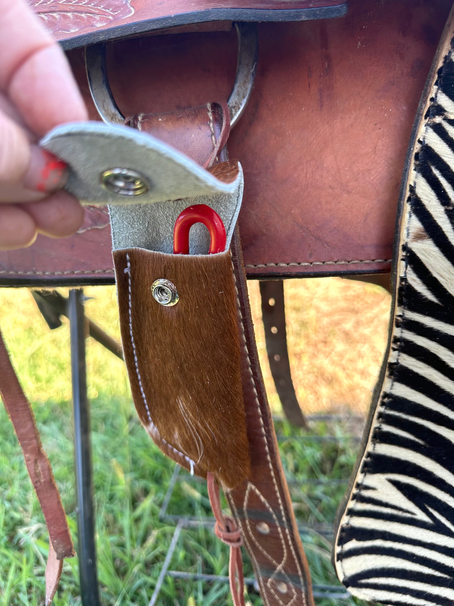Have your hoof pick on your saddle when you need it.  This one comes with a hoof pick and ties to your saddle.