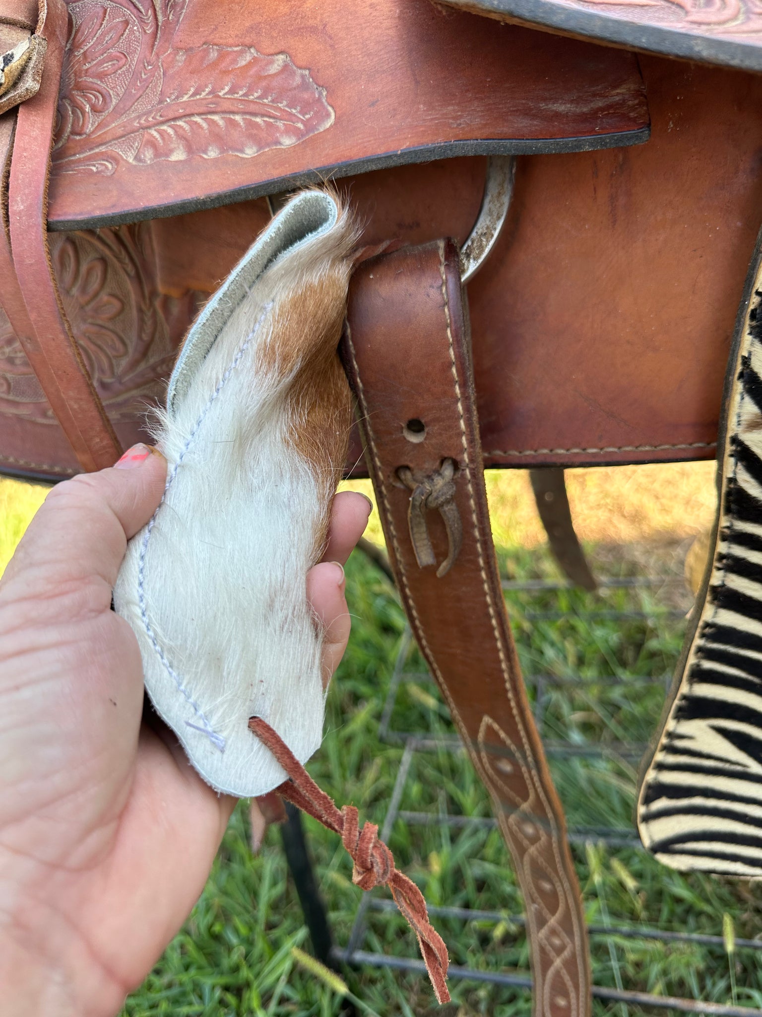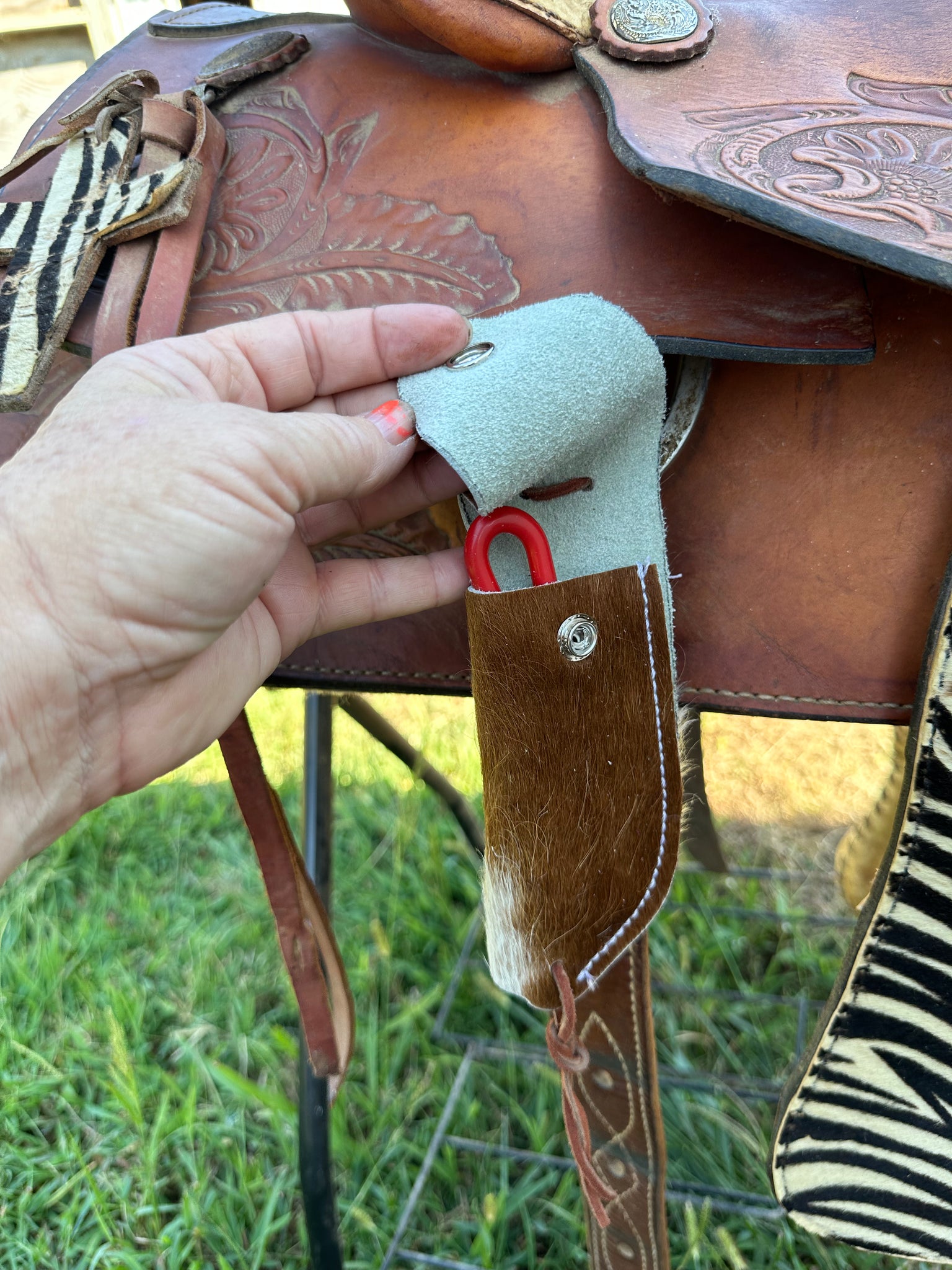 Hoof pick holder cowhide