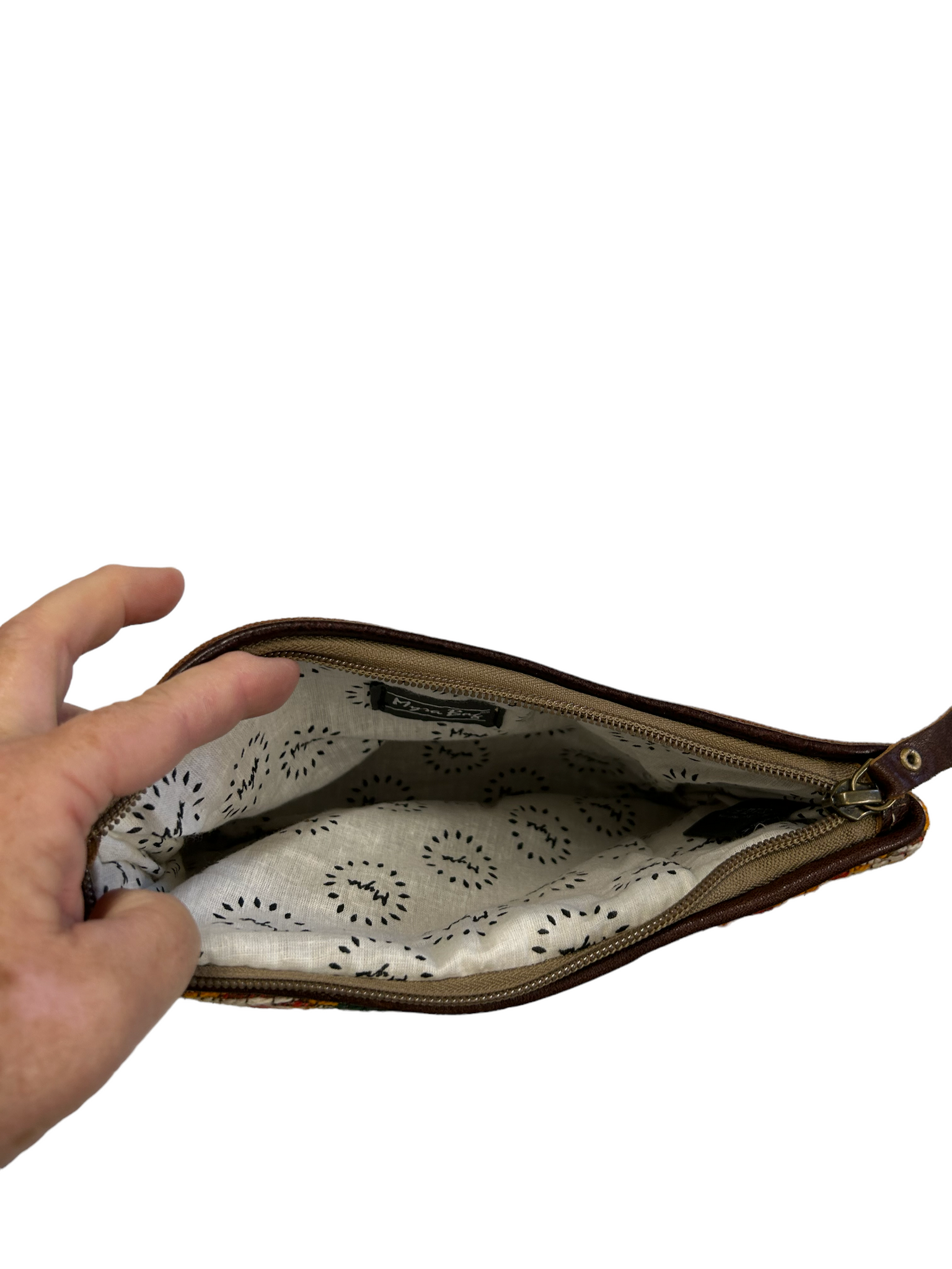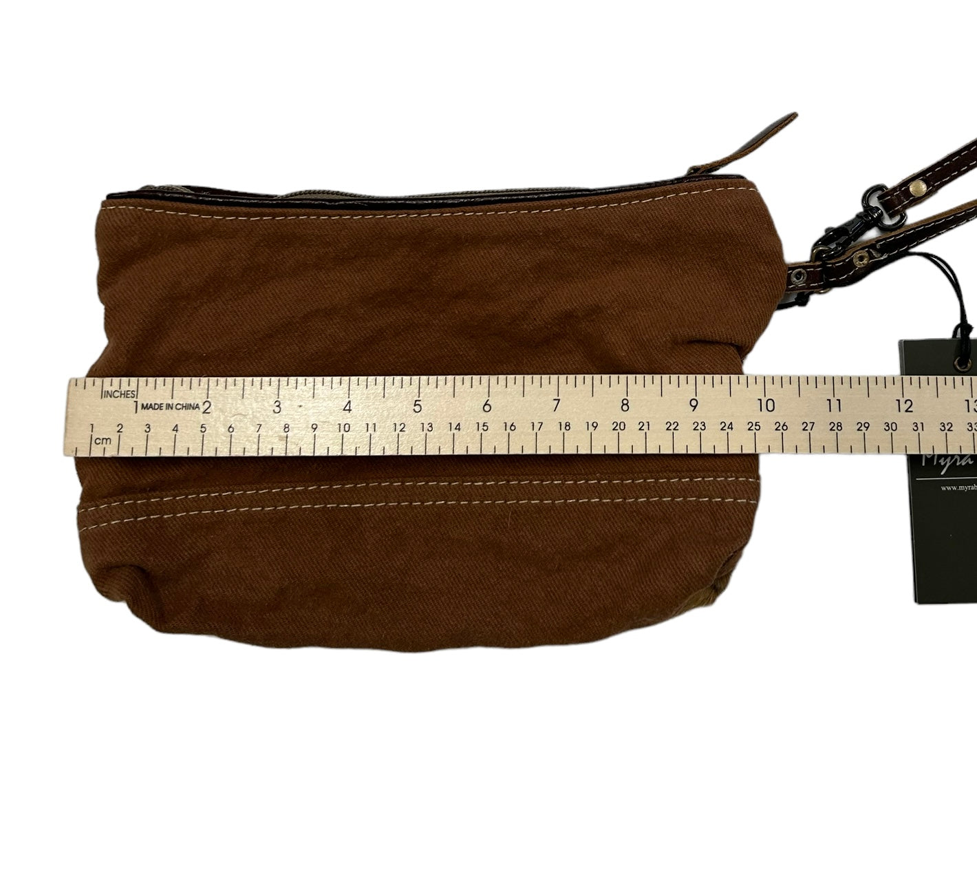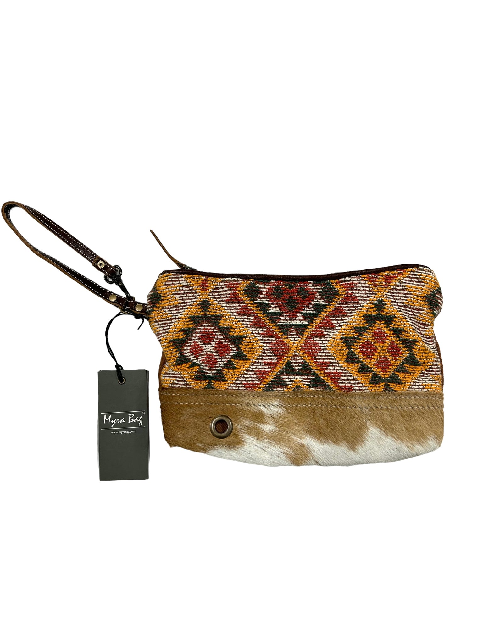 9 x 8 small cowhide bag. Beautiful with cow hide leather and a premium zipper. You can use this as a wristlet, make up bag, Medicine bag, etc….