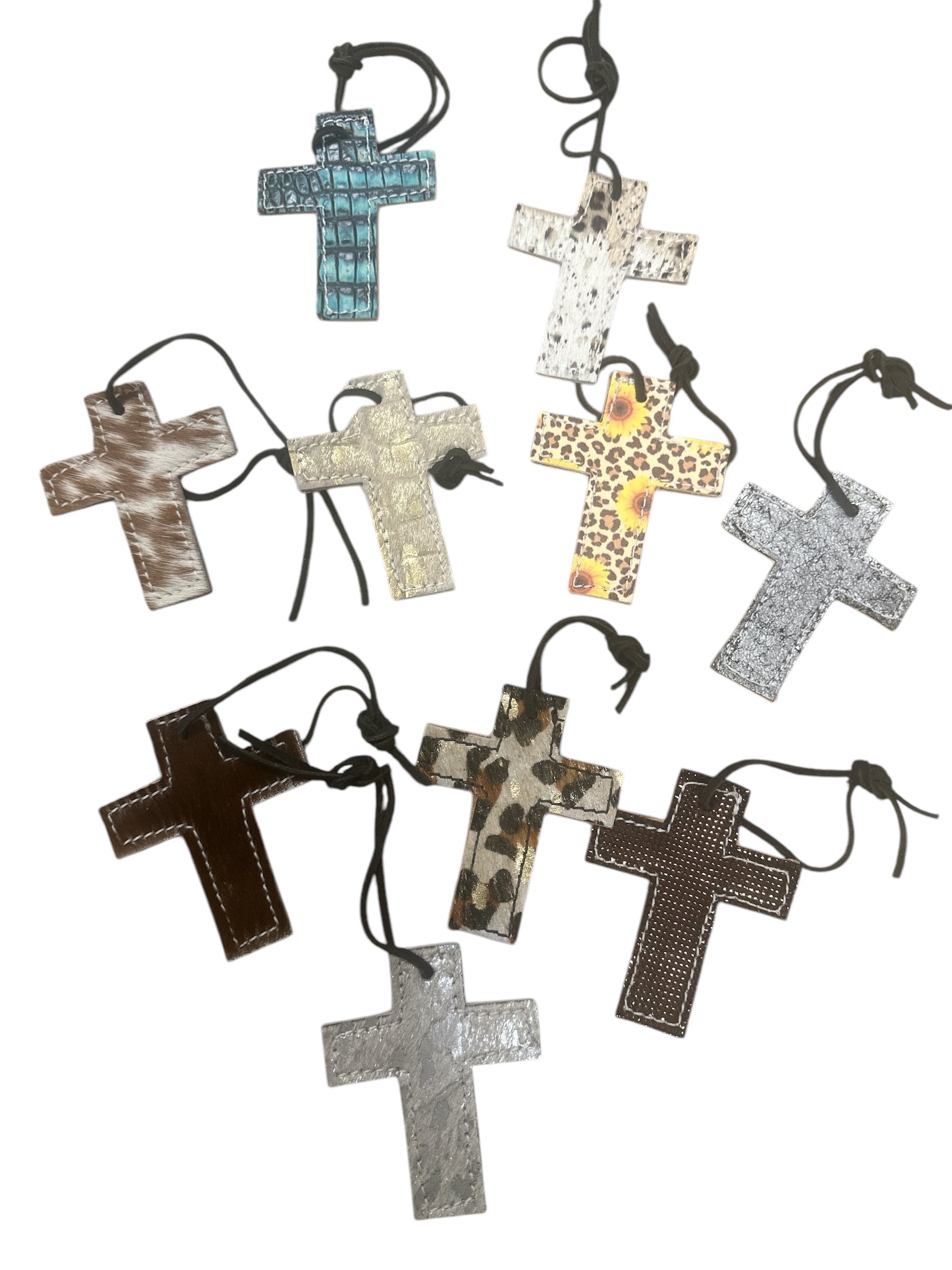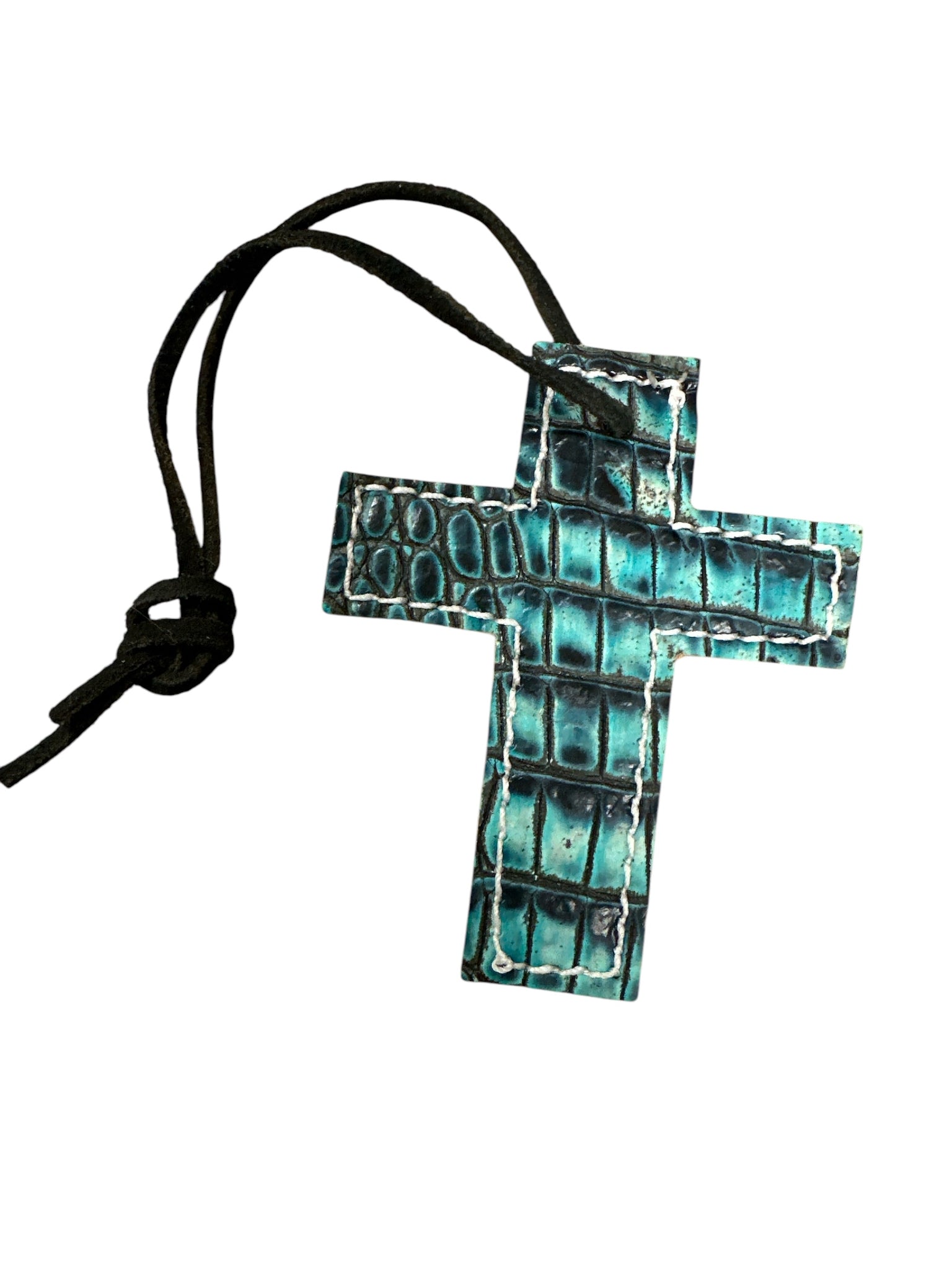 leather saddle cross 4”x 3.25”.